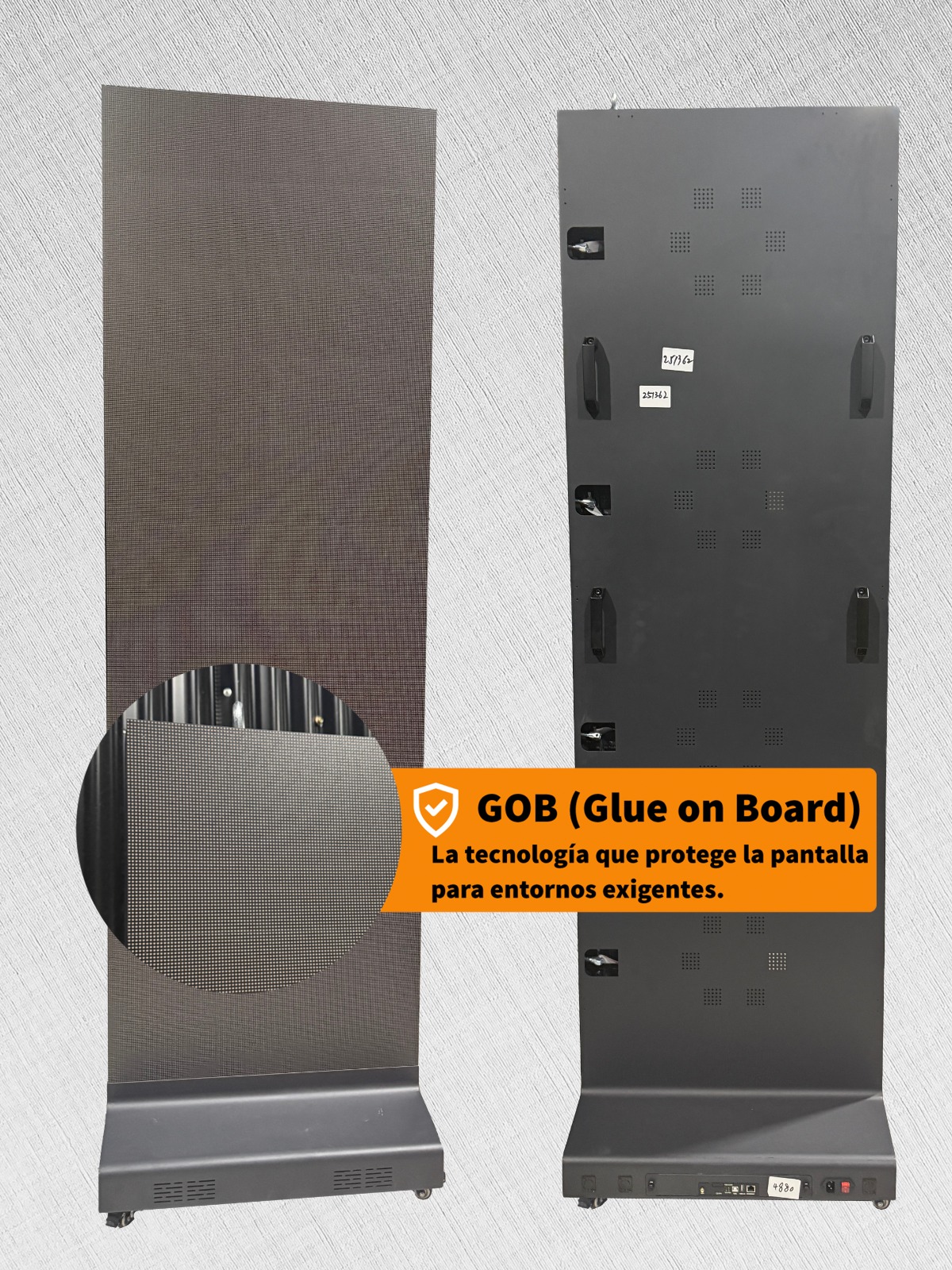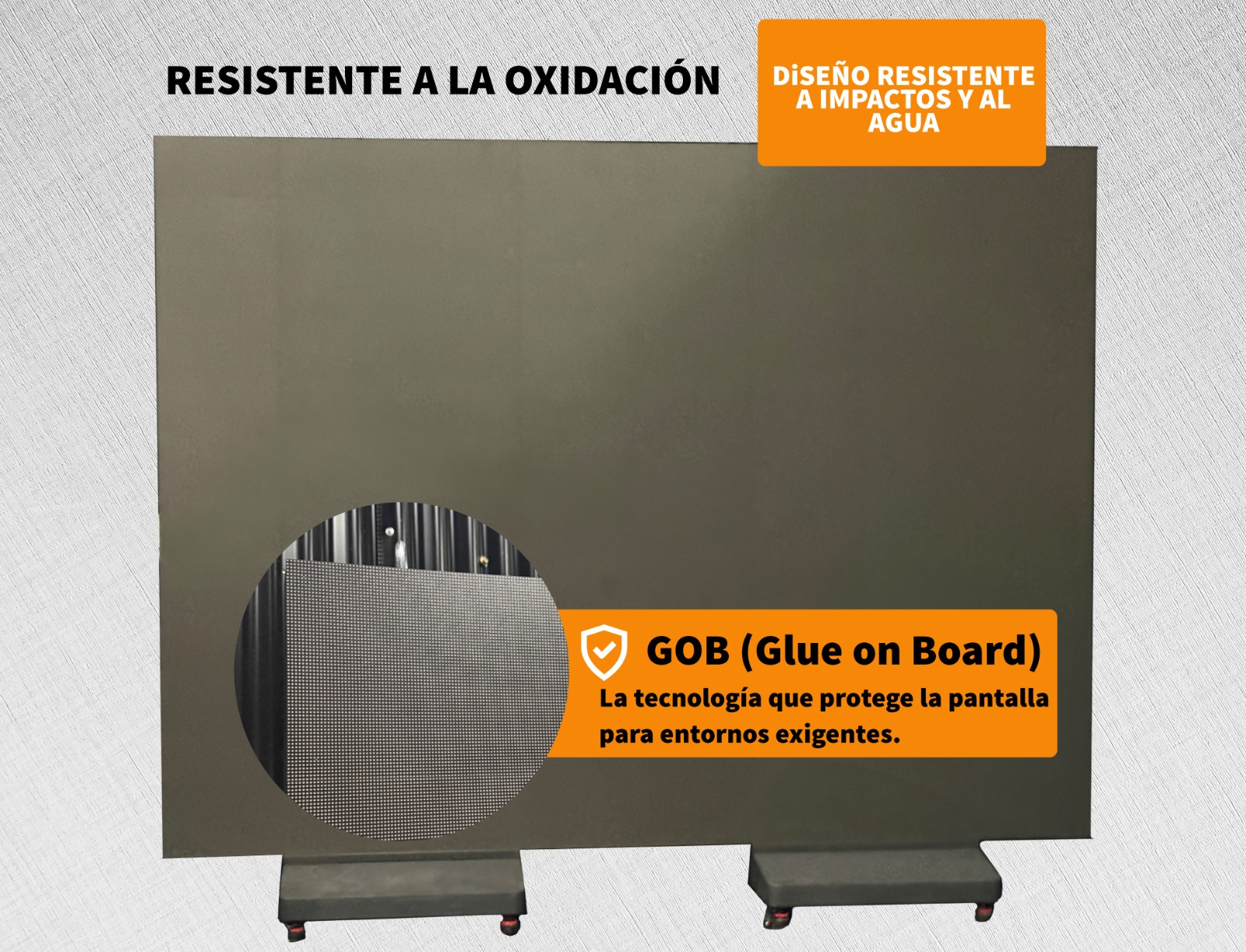 Asimismo cuenta con protección GOB, protección GOB (Glue on Board) es una tecnología que aplica una capa especial de resina transparente sobre los LEDs del módulo, sellándolos y protegiéndolos contra daños externos.