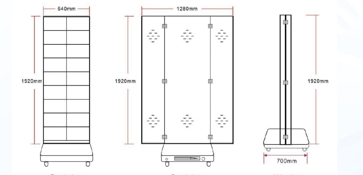 Su estructura autoportante y diseño compacto facilitan el traslado y la adaptación a distintos espacios, sin necesidad de instalaciones complejas. Además, permite conectar dos o más tótems entre sí para formar un Poster LED, ideal cuando se requiere una pantalla de mayor tamaño.